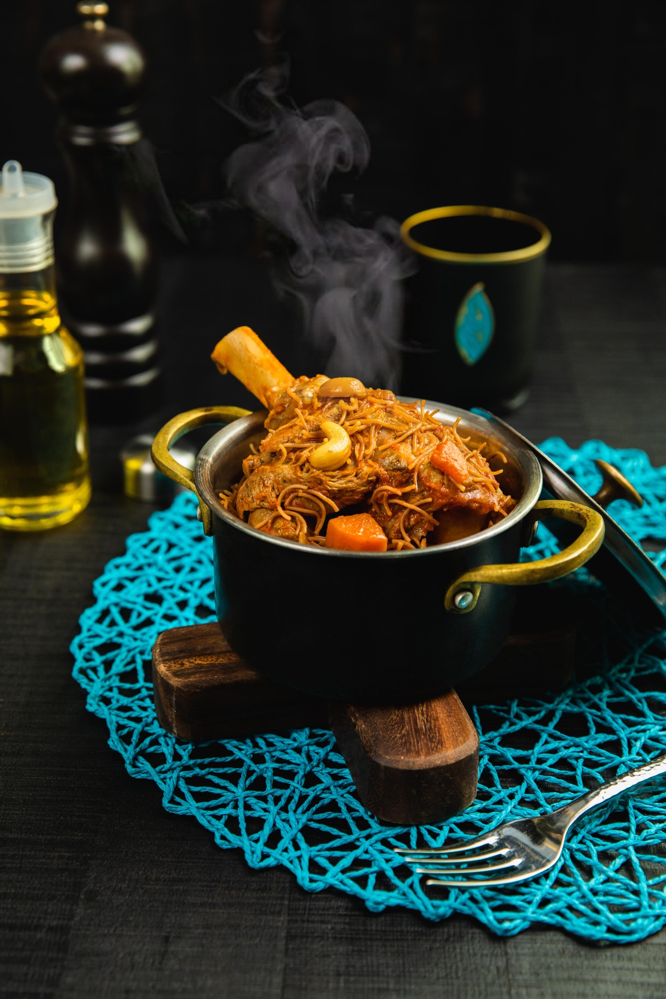 Rogan Josh duszony w sosie z dodatkiem czosnku, imbiru i aromatycznych przypraw -