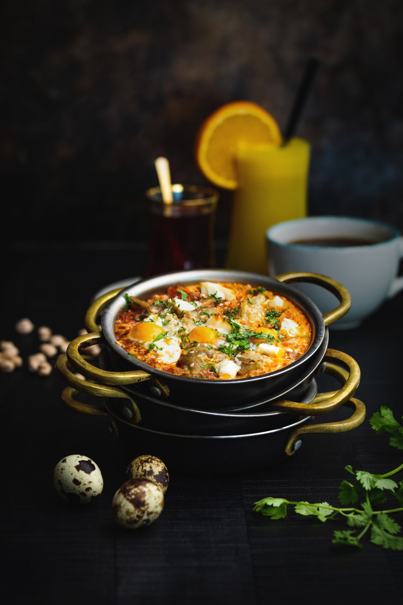 Kawałki warzyw, kurczaka, jagnięciny, krewetek lub mieszanka kawałków cebuli i papryki marynowanych w pikantnym sosie i bogatych przyprawach, podawane na gorącym talerzu -